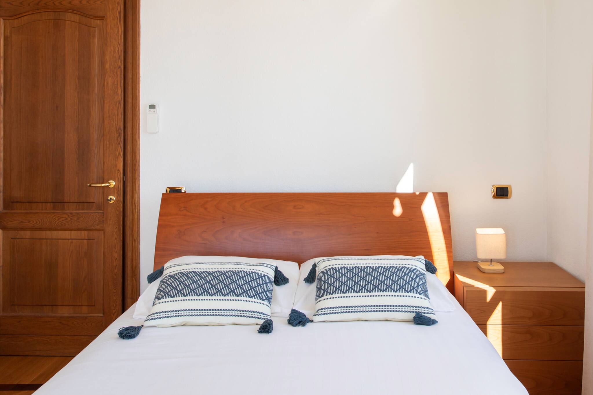 . Une suite parentale climatisée composée d’un lit double 180cm, un ventilateur de plafond, de lampe et chaise de chevet, un grand placard et fenêtre double vitrage avec vue sur le jardin