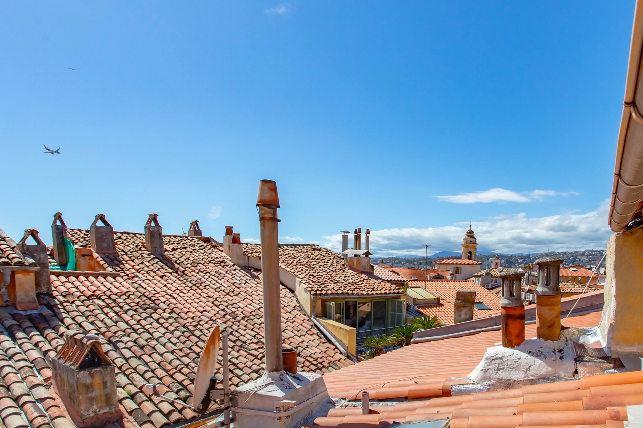 Ce lumineux logement de 20m² est perché sur les toits du Vieux Nice. Situé au 5ème étage sans ascenseur le calme et l' aperçue Mer au dessus des toits seront votre récompense. Sa localisation à 5 mins de marche de la Mer et 3 mins du marché au fleurs est idéale Tramway T1 et parkings publiques à 5mins. Équipe avec soins: clim réversible, WIFI, lit double 140cm, espace repas, cuisine équipée, micro-onde, machine à laver, salle de douche avec WC. Idéal pour profiter du cœur de Nice à 2 personnes