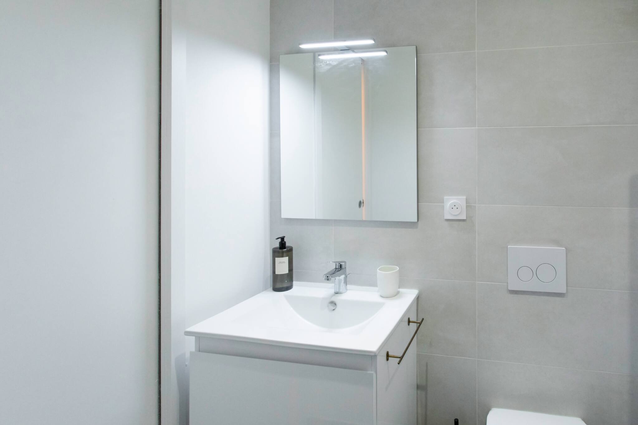 - Une salle de bain soignée : cabine de douche, toilettes, sèche-cheveux.