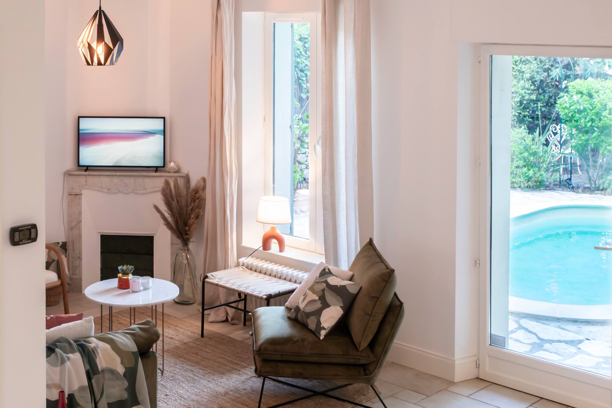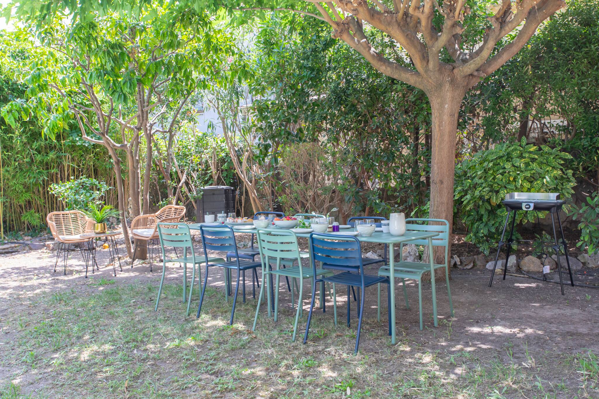 Размещение имеет сад, стиральная машина, Барбекю, утюг, Фен, центральное отопление, кондиционер, бассейн собственный бассейн, гараж в этом же здании, 1 телевизор.