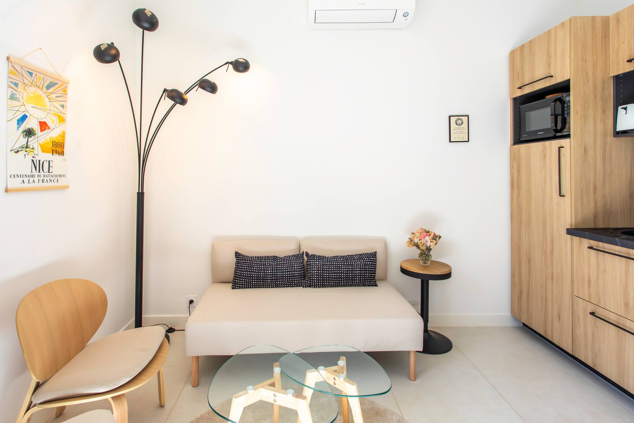 апартаменты в Ницца / Nice 3 количество спален вместимостью на 4 чел. Проживание из 53 кв.м. расположено в спокойной зоне и в жилом комплексе.Размещение имеет лифт, сад, стиральная машина, утюг, Фен, центральное отопление, кондиционер, 1 телевизор. Кухня, оборудовано холодильник, микроволновая печь, духовка, морозильная камера, посудомоечная машина, столовые приборы, кухонная утварь, кофеварка, тостер и Чайник.