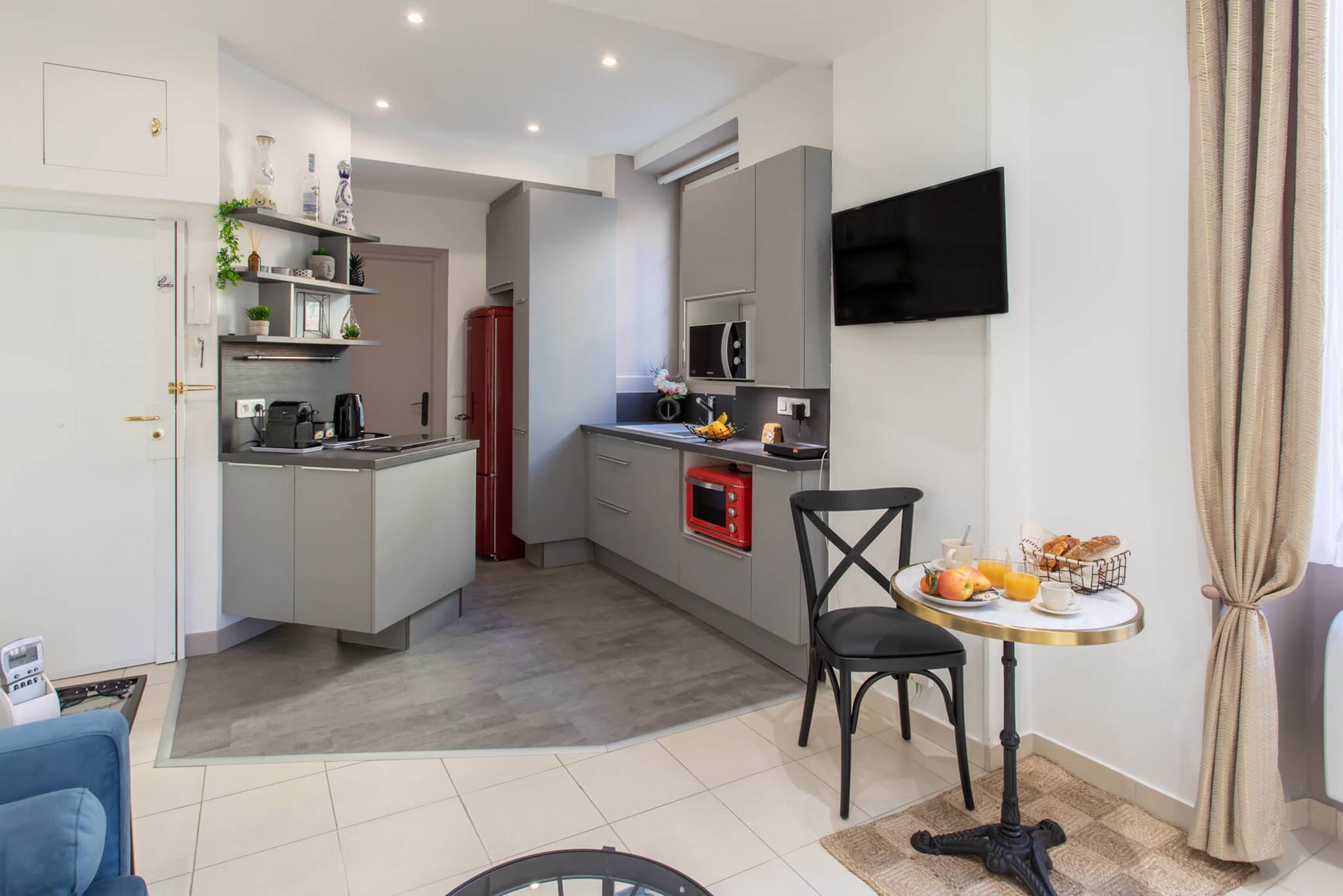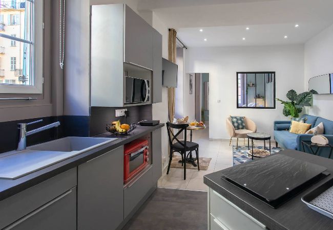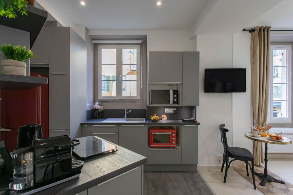 апартаменты в Ницца / Nice 1 количество спален вместимостью на 2 чел. Проживание из 31 кв.м комфортабельный и современный. расположено в спокойной зоне и в черте города.Размещение имеет стиральная машина, утюг, Фен, центральное отопление, кондиционер, закрытая парковка в в прилегающем здании, 1 вентилятор, 1 телевизор. Кухня, совмещенная с залом, оснащена индукционной плитой, оборудовано холодильник, микроволновая печь, духовка, морозильная камера, посудомоечная машина, столовые приборы, кухонная утварь, кофеварка, тостер и Чайник.