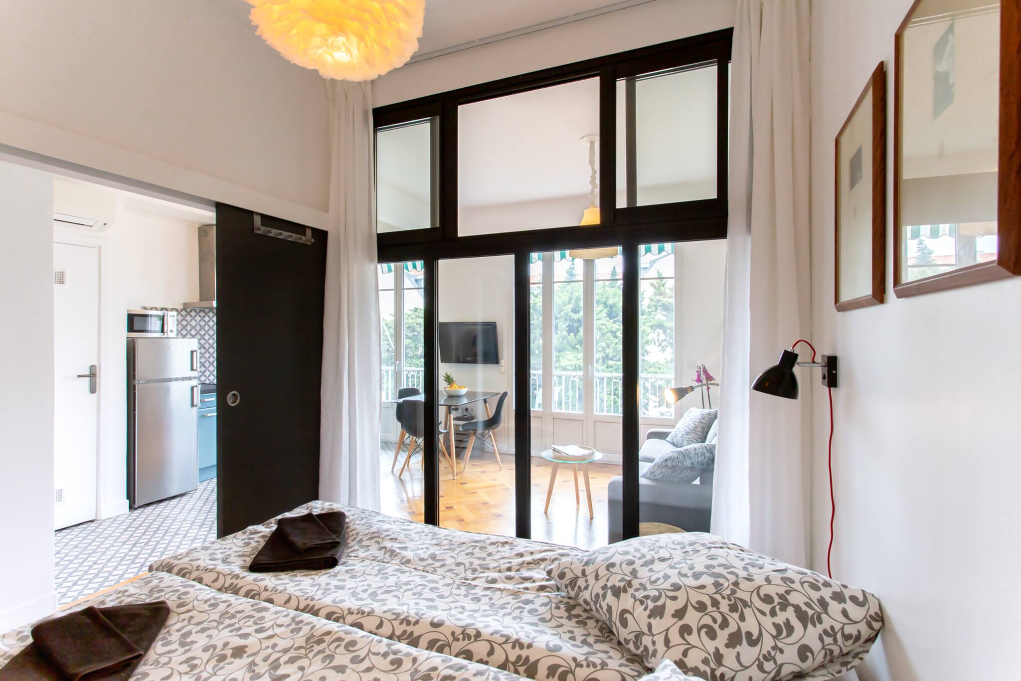 апартаменты в Ницца / Nice 1 количество спален вместимостью на 2 чел. Проживание из 40 кв.м. расположено в с хорошим транспортным обеспечением зоне и в черте города.Размещение имеет лифт, сад, стиральная машина, утюг, Фен, Балкон, центральное отопление, кондиционер, 1 телевизор. Кухня, совмещенная с залом, оборудовано холодильник, микроволновая печь, духовка, морозильная камера, столовые приборы, кухонная утварь, кофеварка, тостер, Чайник и Плита.