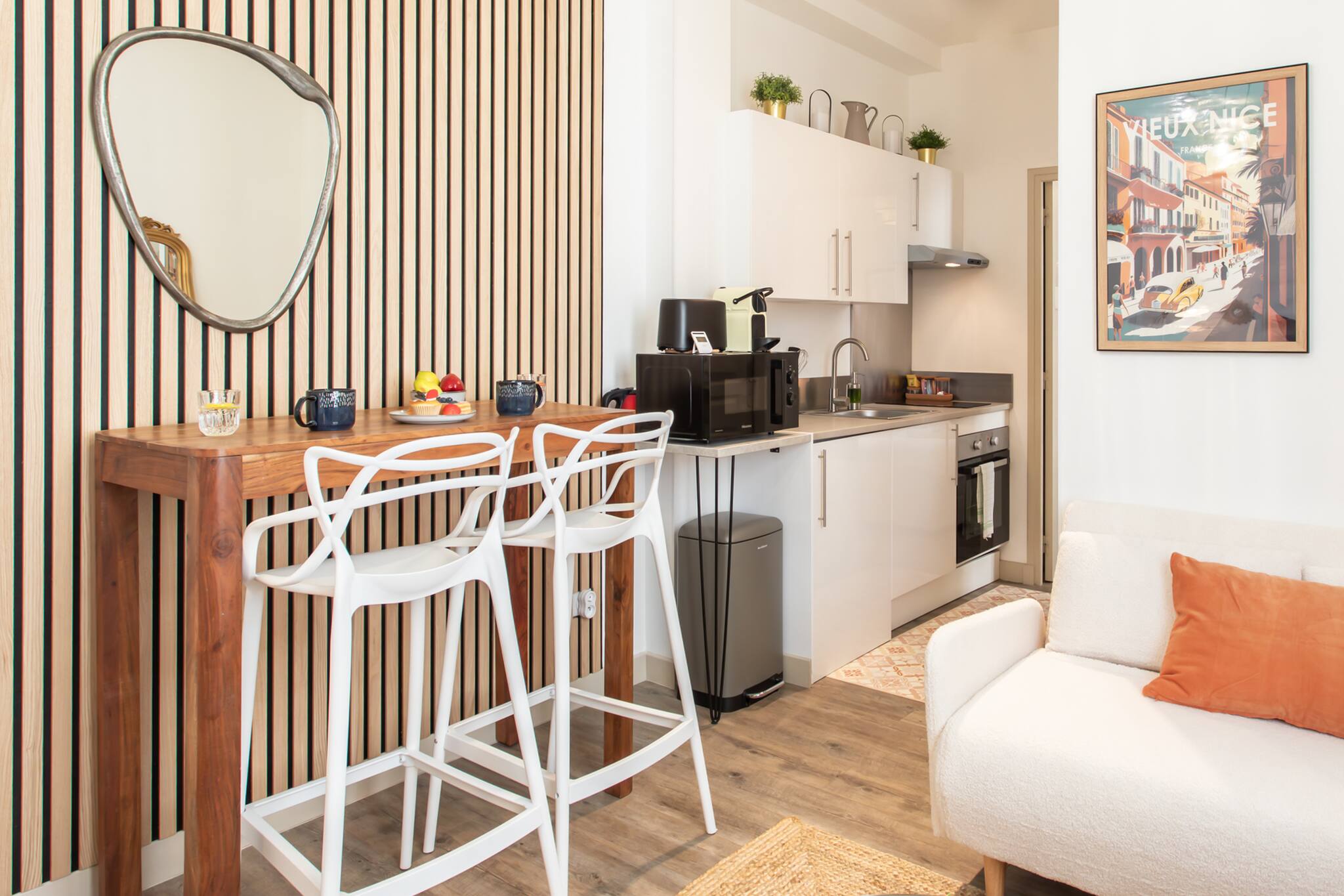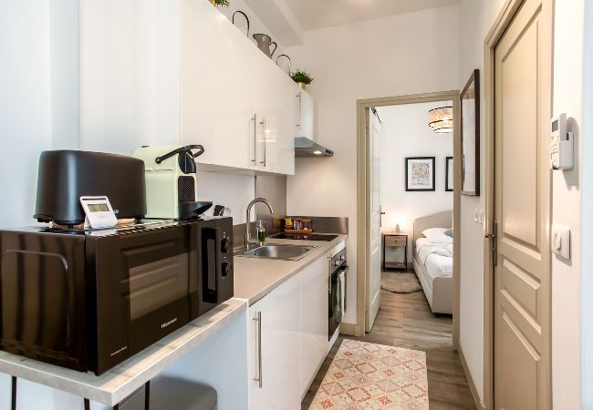апартаменты в Ницца / Nice 1 количество спален вместимостью на 2 чел. Проживание из 25 кв.м. расположено в живописной зоне и рядом с торговыми центрами и ресторанами.Размещение имеет стиральная машина, утюг, Фен, центральное отопление, кондиционер, 1 телевизор. Кухня, оборудовано холодильник, микроволновая печь, духовка, морозильная камера, столовые приборы, кухонная утварь, кофеварка, тостер и Чайник.