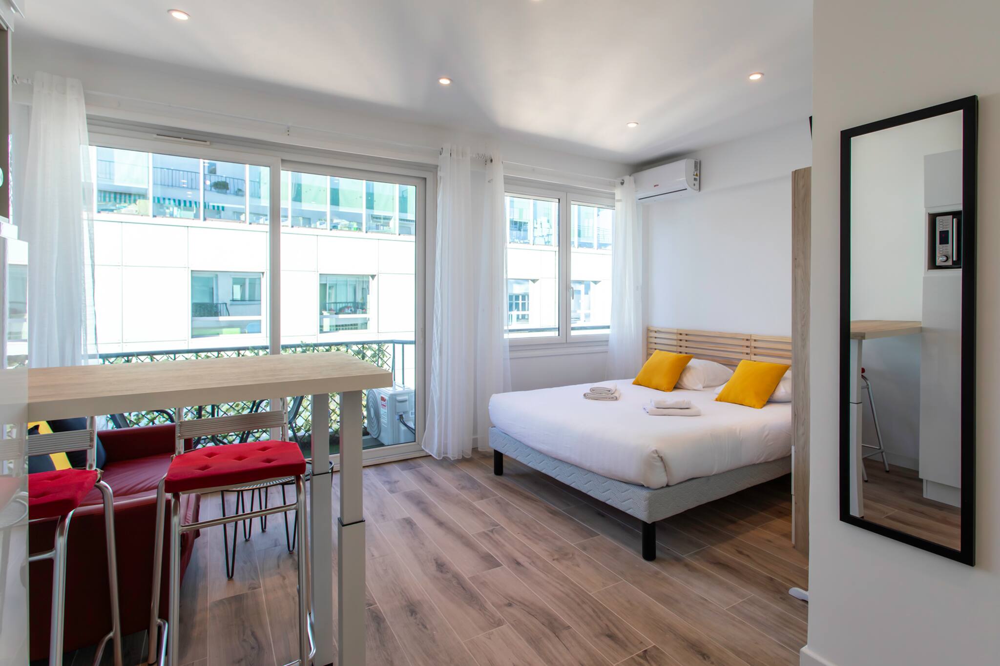 апартаменты в Ницца / Nice 1 количество спален вместимостью на 2 чел. Проживание из 25 кв.м. расположено в оживленной зоне и рядом с морем.Размещение имеет лифт, сад, стиральная машина, утюг, Фен, центральное отопление, кондиционер, 1 телевизор. Кухня, совмещенная с залом, оборудовано микроволновая печь, морозильная камера, посудомоечная машина, столовые приборы, кухонная утварь, кофеварка, тостер и Чайник.