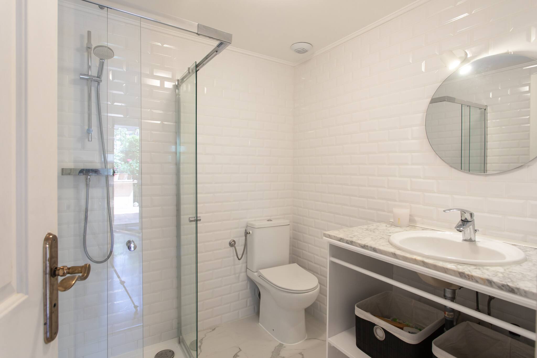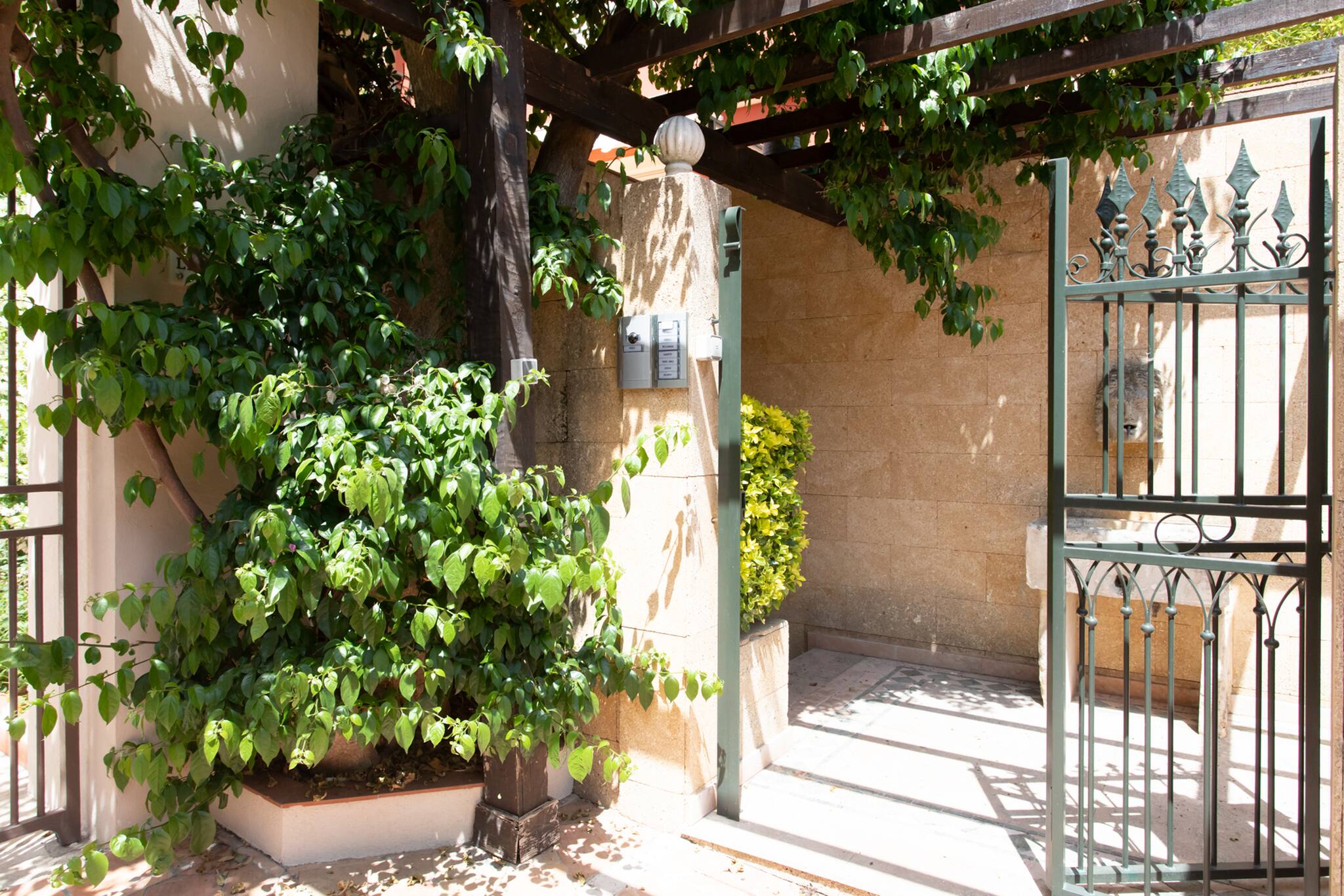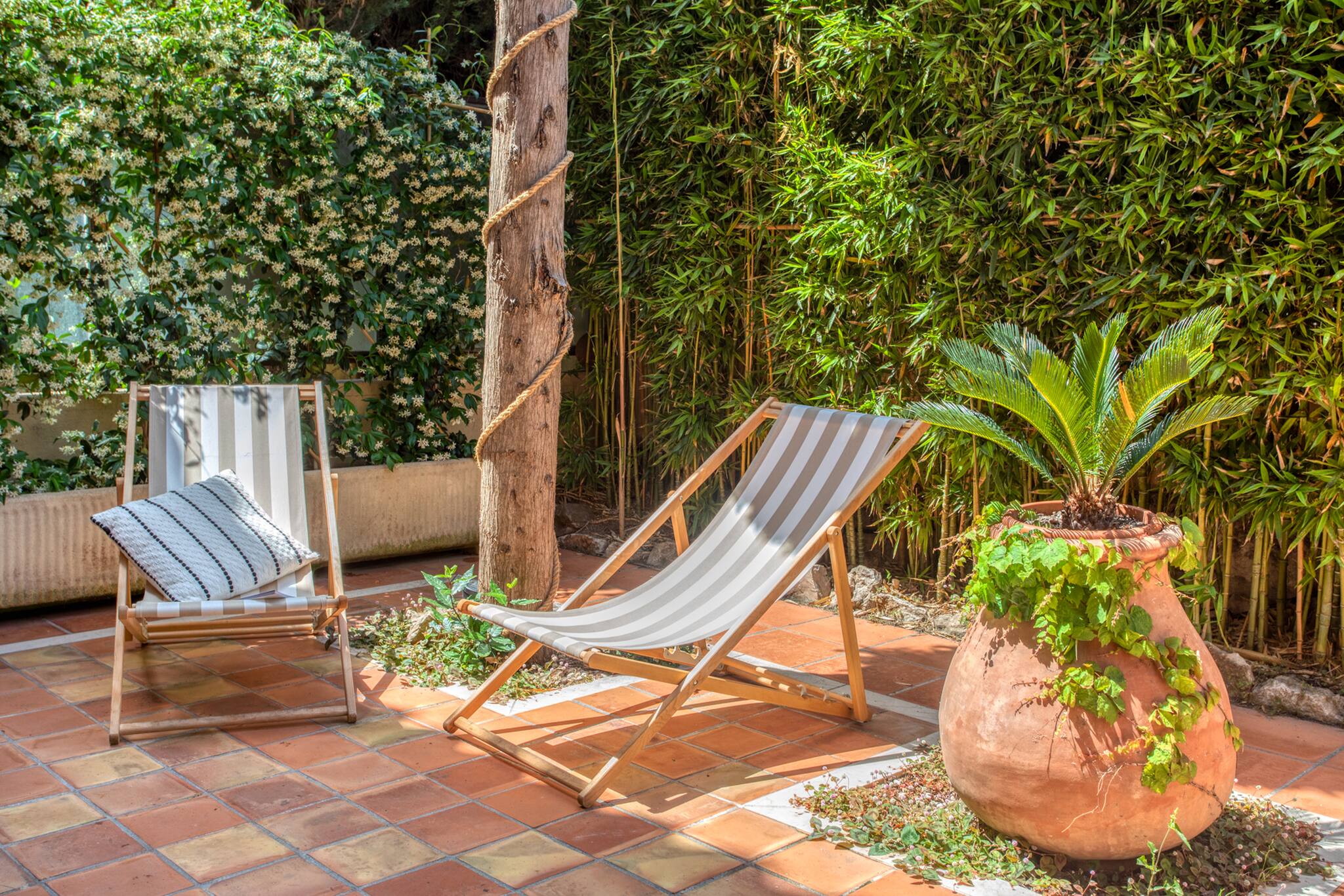 Размещение имеет сад, 40 кв.м террасы, стиральная машина, утюг, Фен, центральное отопление, кондиционер, гараж в этом же здании.