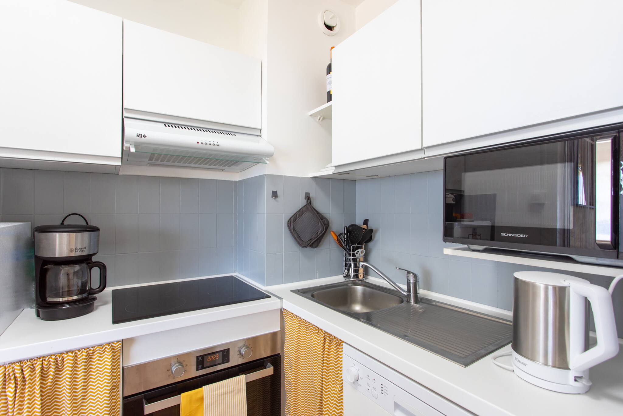 该 厨房, 配备有 冰箱, 微波炉, 烤箱, 冰柜, 洗碗机, 碗碟/刀具, 餐具/厨房, 咖啡壶, 面包机, 烧水壶 和 炉灶.