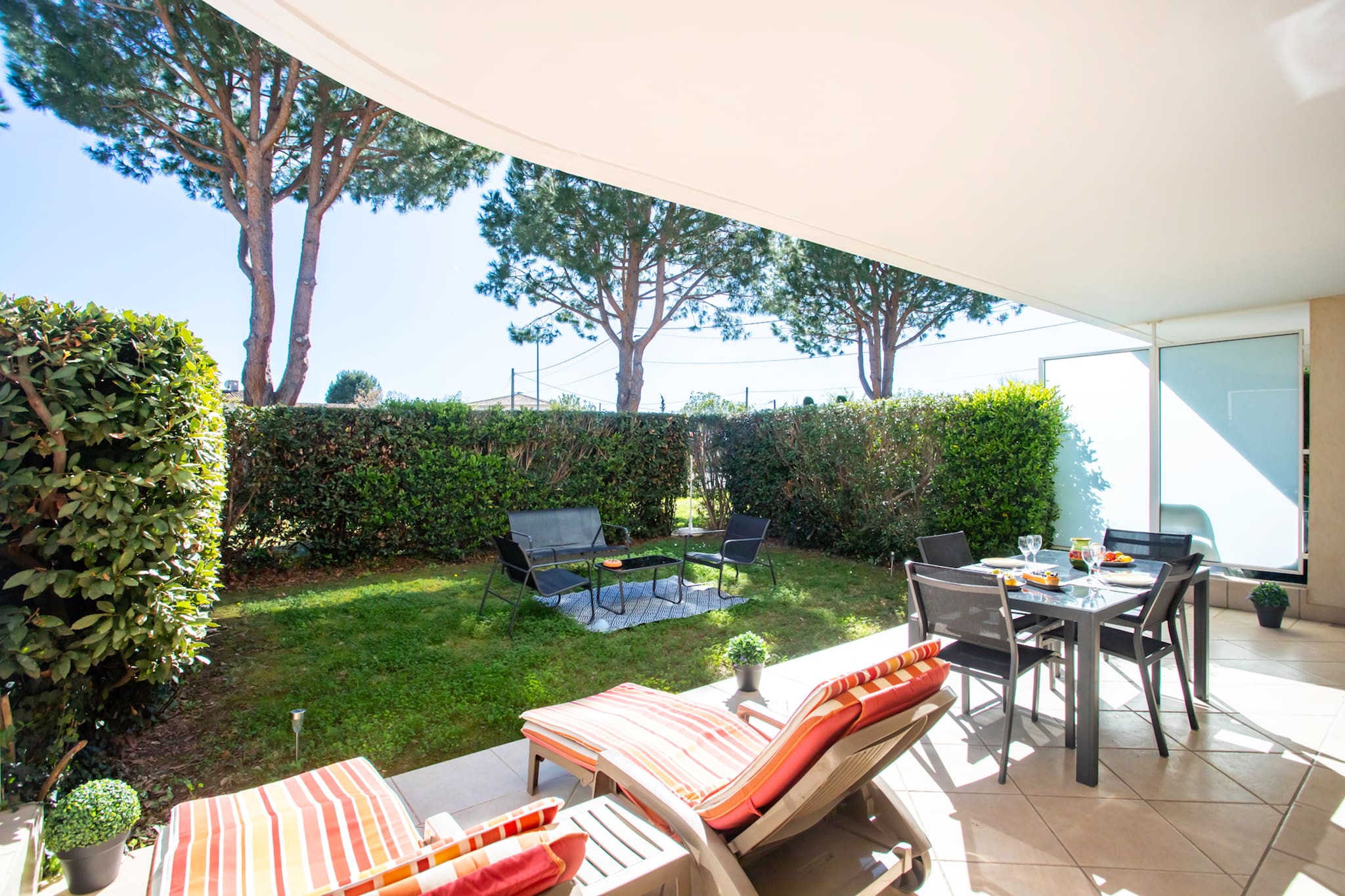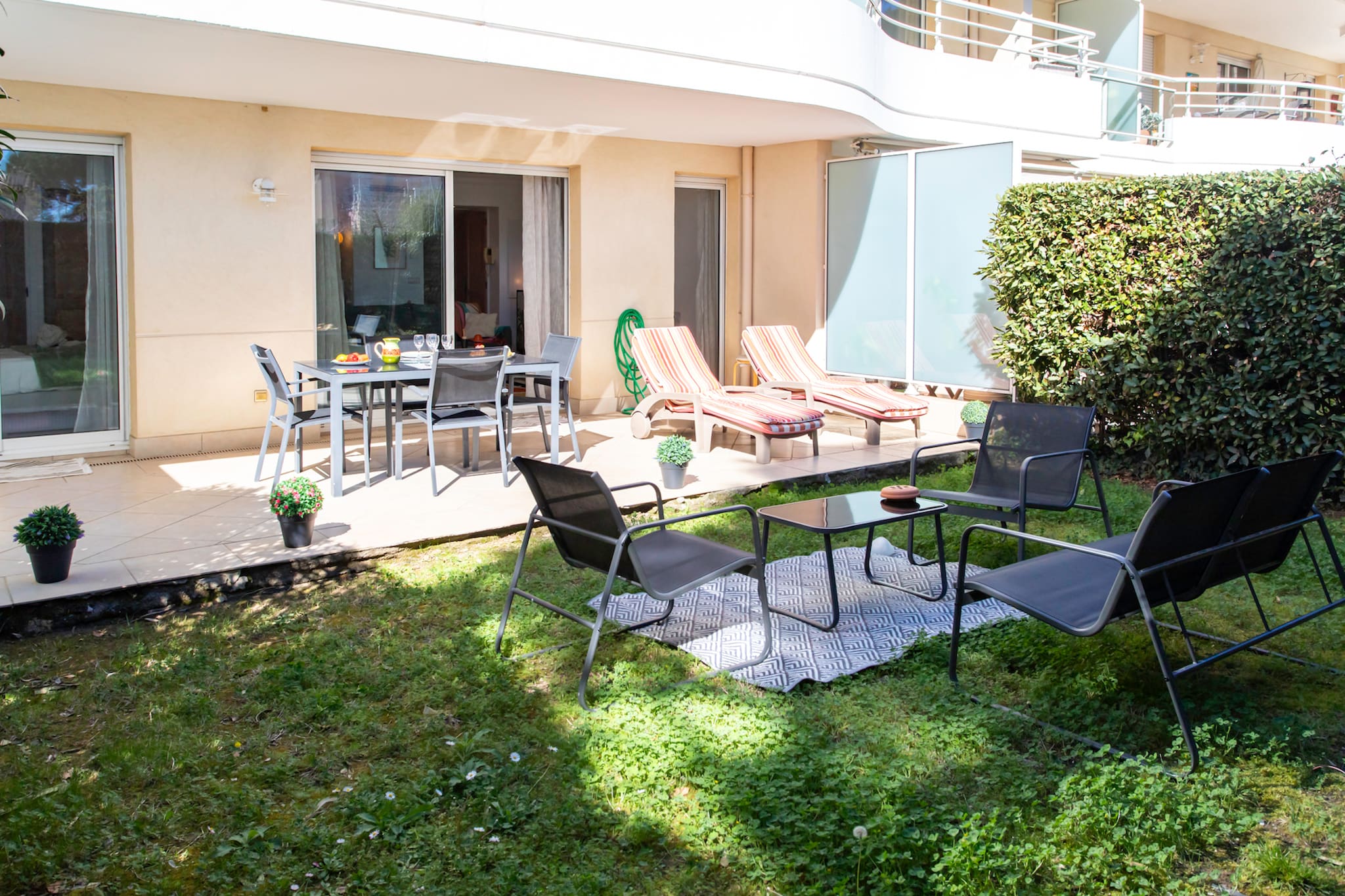 在 Antibes 的 condominium 有 1 卧室 有 可容纳 2 人. 住宿 有 42 m². 配有 庭院家具, 洗衣机, 熨斗, 吹风机, 中央暖气, 空调, 泳池 公共泳池, 车库在同一建筑物内, 1 电视. 该 厨房, 配备有 冰箱, 微波炉, 烤箱, 冰柜, 碗碟/刀具, 餐具/厨房, 咖啡壶, 面包机 和 烧水壶.
