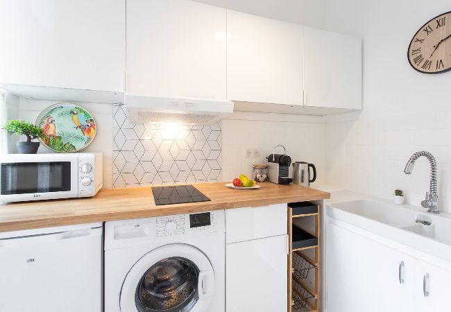 在 Cannes 的 condominium 有 1 卧室 有 可容纳 2 人. 住宿 有 30 m². 配有 公园, 庭院家具, 洗衣机, 熨斗, 吹风机, 中央暖气, 空调, 车库毗邻建筑物, 1 电视, 卫星电视 (语言: 英语). 该 厨房, 配备有 冰箱, 微波炉, 烤箱, 冰柜, 碗碟/刀具, 餐具/厨房, 咖啡壶, 面包机 和 烧水壶.