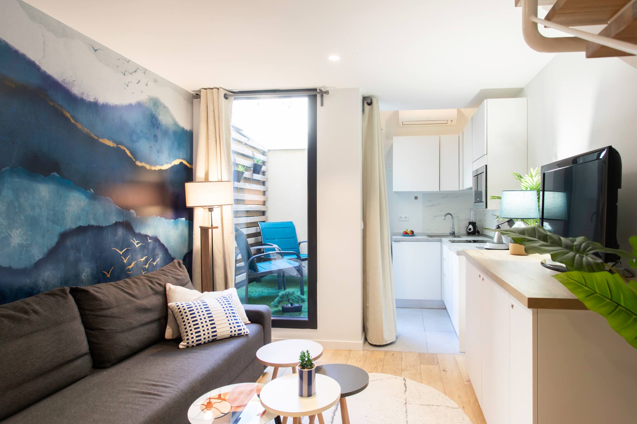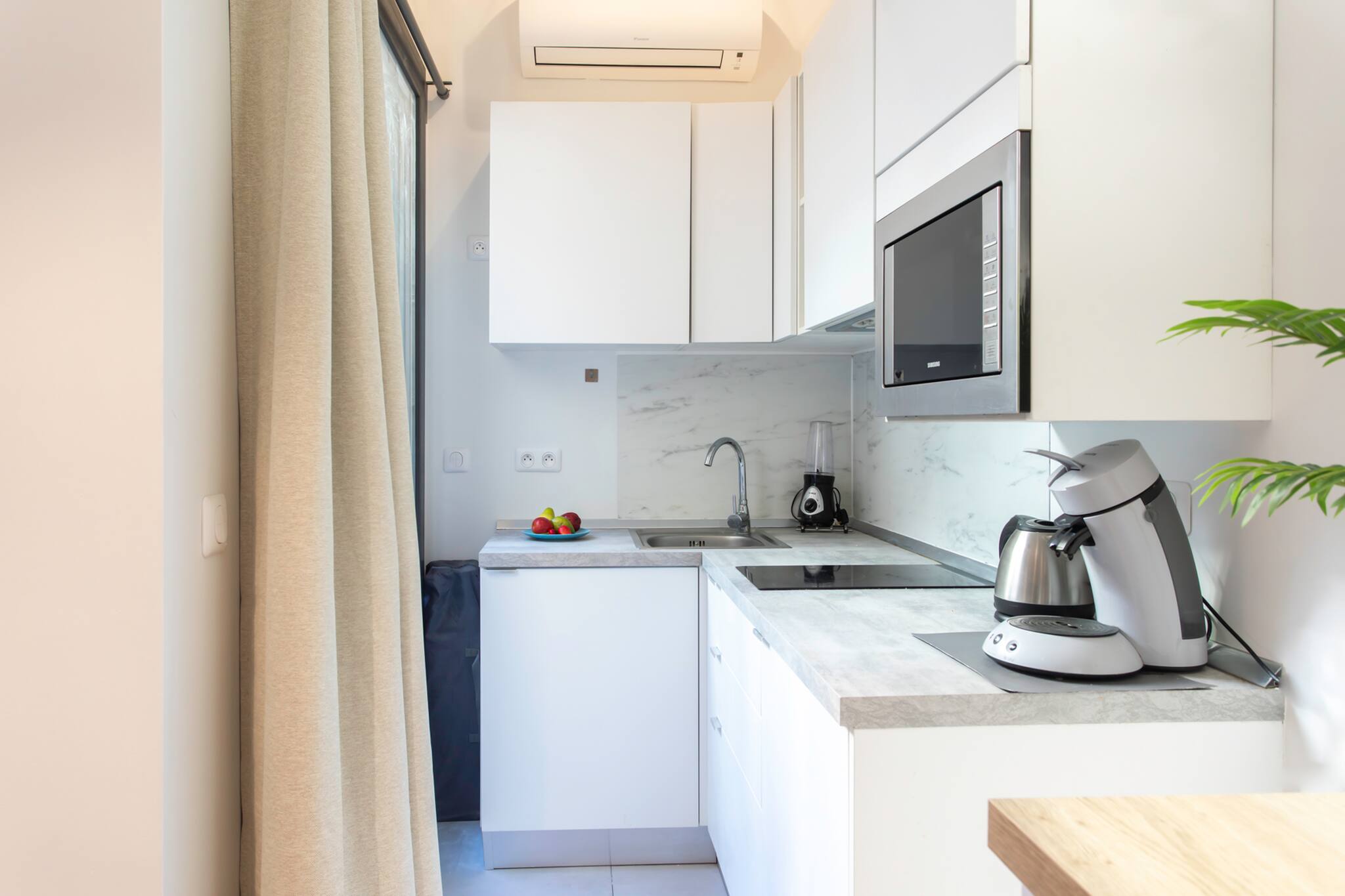 在 Nice 的 公寓 有 1 卧室 有 可容纳 2 人. 住宿 有 30 m². 坐落于一个 安静的 的区域 或 在市中心. 配有 庭院家具, 3 m² 露台, 洗衣机, 吹风机, 熨斗, 吹风机, 中央暖气, 空调, 1 电视. 该 开放式厨房, 配备有 冰箱, 微波炉, 烤箱, 冰柜, 碗碟/刀具, 餐具/厨房, 咖啡壶, 面包机 和 烧水壶.