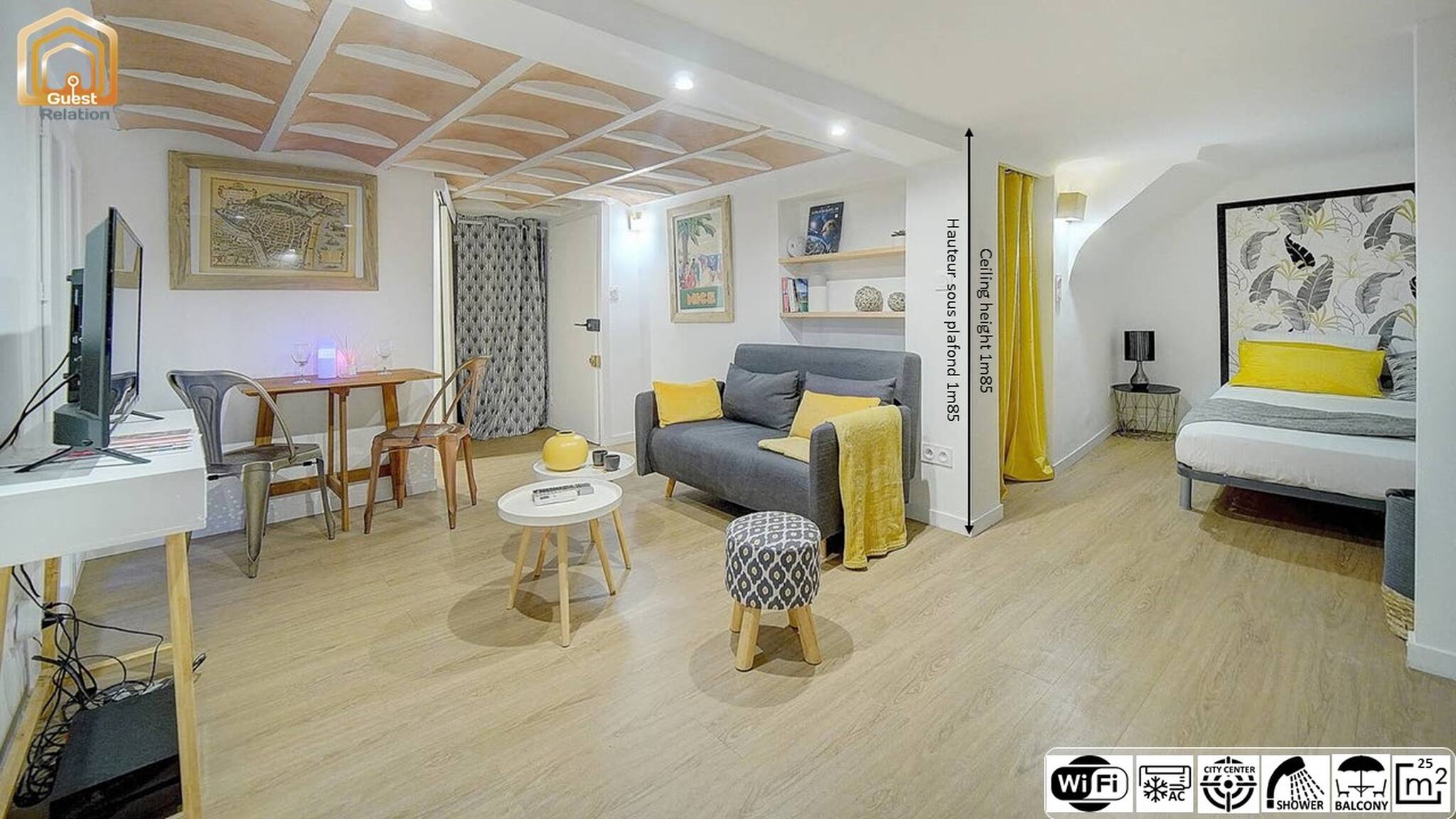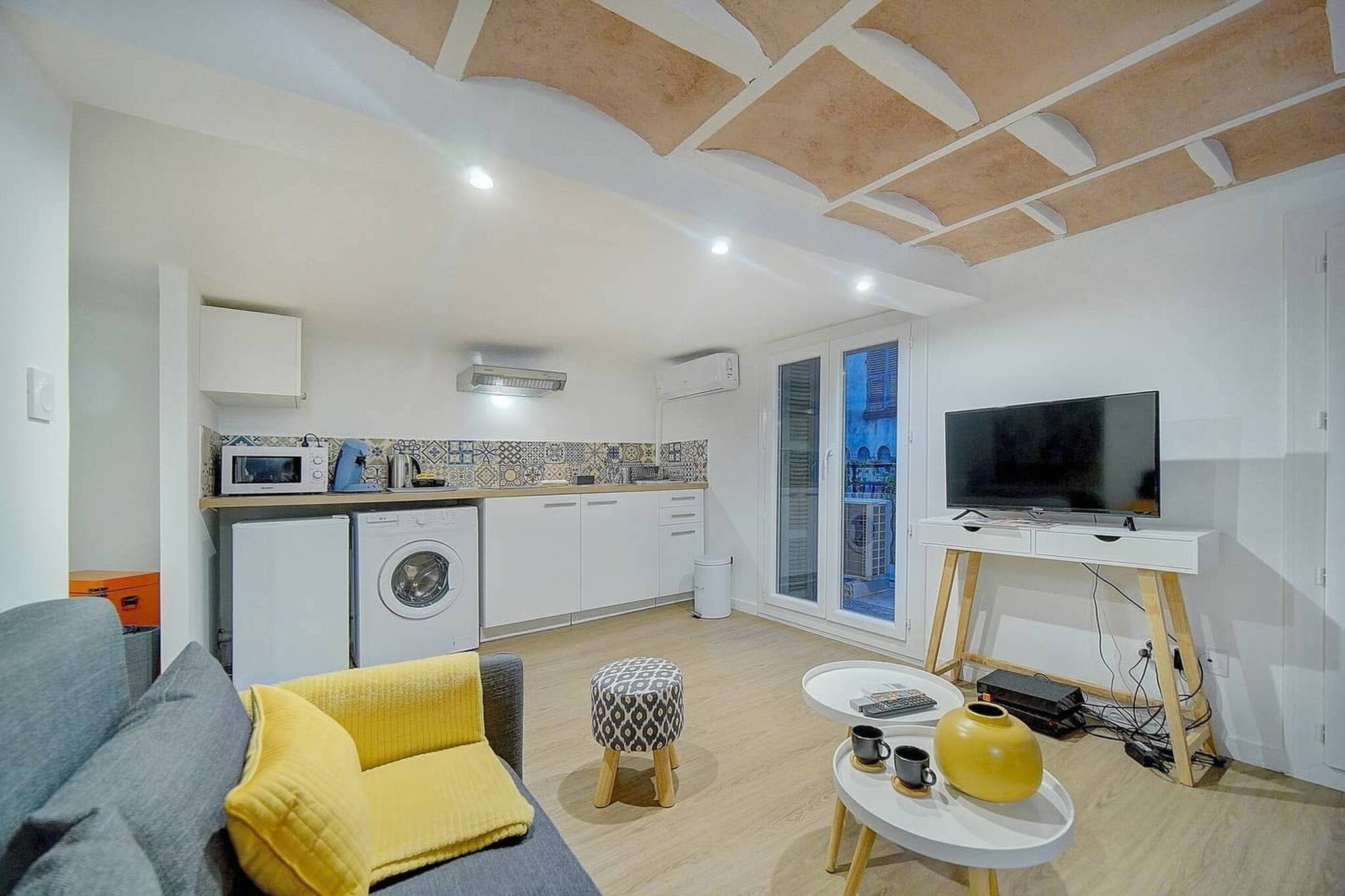 在 Nice 的 工作室 有 1 卧室 有 可容纳 2 人. 住宿 有 25 m². 坐落于一个 活跃的 的区域 或 在市中心. 配有 洗衣机, 熨斗, 吹风机, 阳台, 中央暖气, 空调, 1 电视. 该 开放式厨房, 配备有 冰箱, 微波炉, 洗碗机, 碗碟/刀具, 餐具/厨房, 咖啡壶, 烧水壶 和 炉灶.