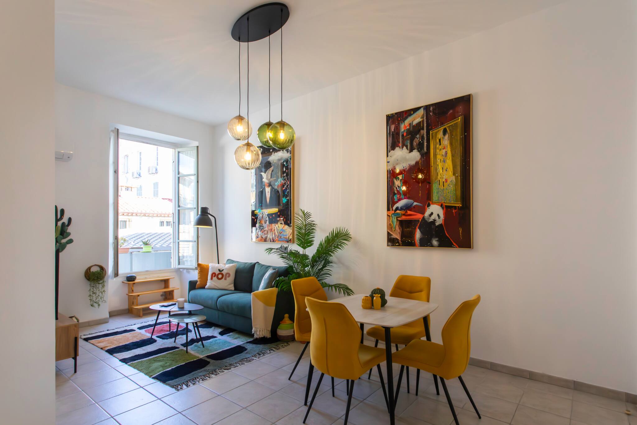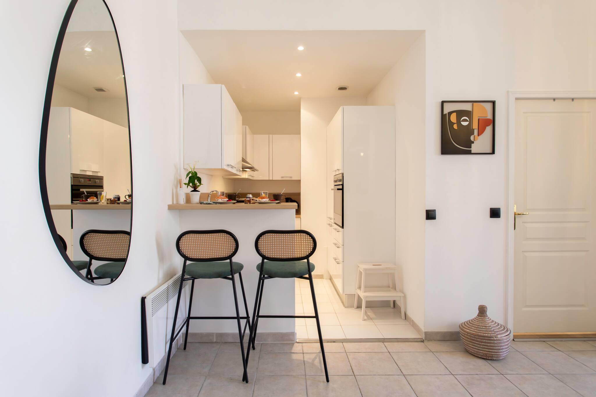 在 Nice 的 公寓 有 1 卧室 有 可容纳 2 人. 住宿 有 44 m². 坐落于一个 活跃的 的区域 或 在市中心. 配有 电梯, 洗衣机, 熨斗, 吹风机, 中央暖气, 空调, 1 电视. 该 开放式厨房, 配备有 冰箱, 微波炉, 烤箱, 冰柜, 洗碗机, 碗碟/刀具, 餐具/厨房, 咖啡壶, 面包机 和 烧水壶.