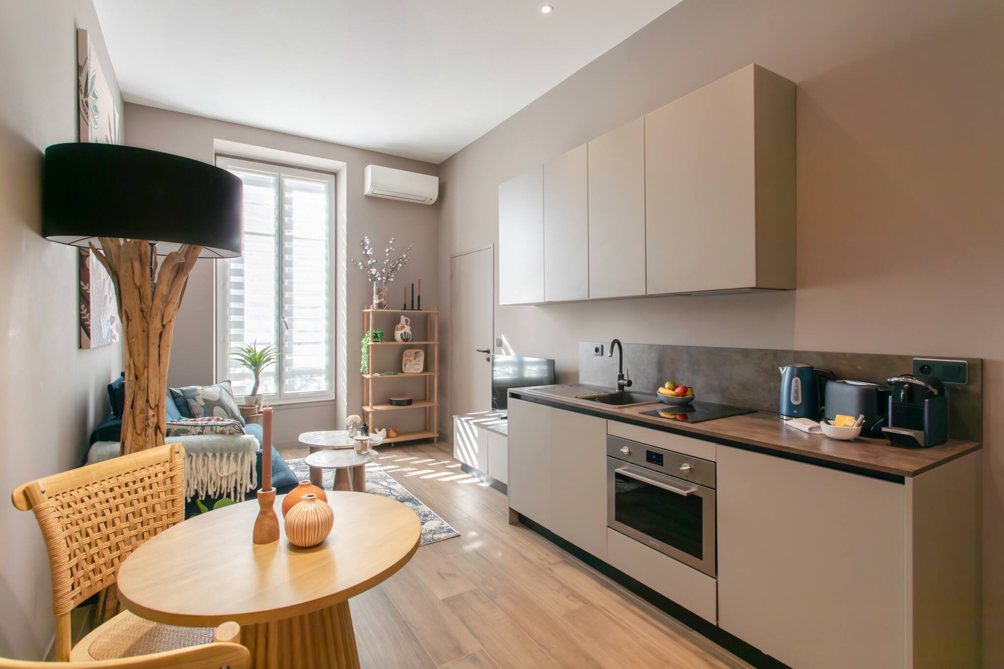 在 Nice 的 公寓 有 1 卧室 有 可容纳 2 人. 住宿 有 37 m². 坐落于一个 安静的 的区域 或 在市中心. 配有 电梯, 洗衣机, 熨斗, 吹风机, 阳台, 中央暖气, 空调, 1 电视. 该 开放式厨房, 配备有 冰箱, 微波炉, 烤箱, 冰柜, 洗碗机, 碗碟/刀具, 餐具/厨房, 咖啡壶, 面包机 和 烧水壶.