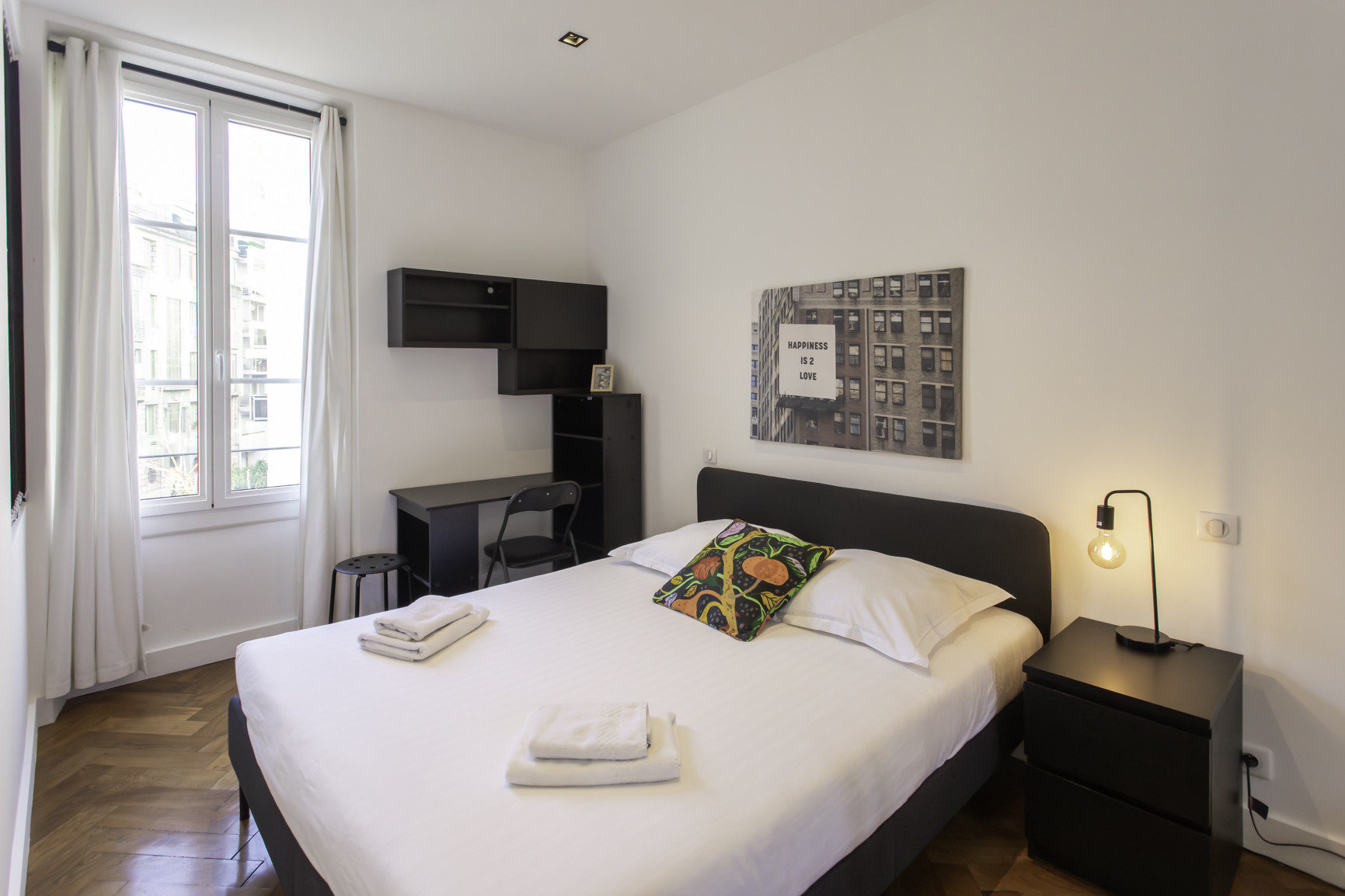 在 Nice 的 公寓 有 4 卧室 有 可容纳 8 人. 住宿 有 120 m². 距离 超市 20 m, 市中心 100 m, 火车站 250 m, 沙滩 800 m. 配有 电梯, 洗衣机, 吹风机, 熨斗, 互联网接入 (Wi-Fi无线网), 吹风机, 中央暖气, 空调, 车库毗邻建筑物, 3 台电视. 该 独立式厨房, 配备有 冰箱, 微波炉, 烤箱, 冰柜, 洗碗机, 碗碟/刀具, 餐具/厨房, 咖啡壶, 面包机 和 烧水壶.