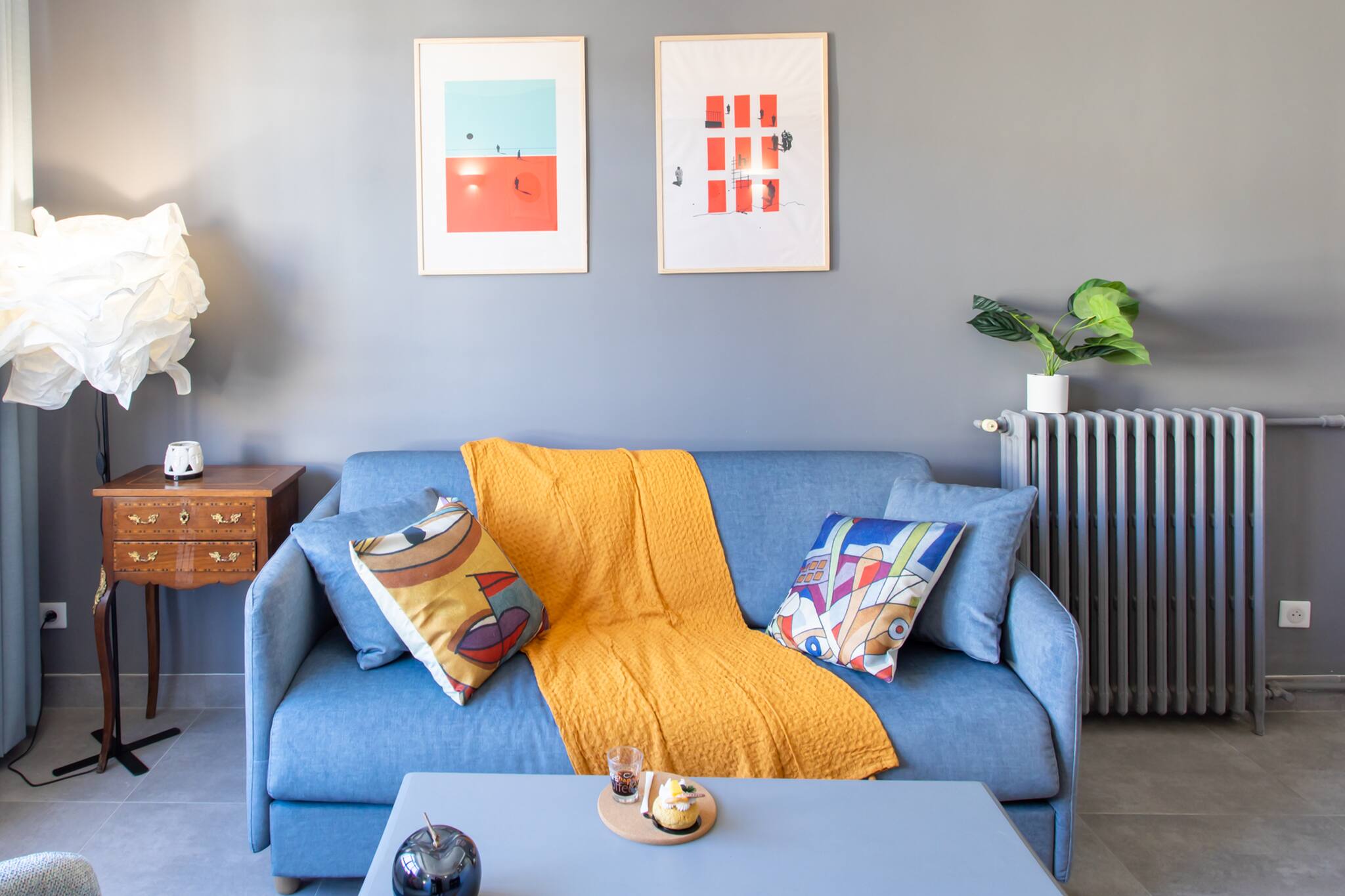 在 Nice 的 公寓 有 1 卧室 有 可容纳 2 人. 住宿 有 55 m². 坐落于一个 安静的 的区域 或 靠近商业中心和餐馆. 配有 电梯, 洗衣机, 熨斗, 吹风机, 中央暖气, 1风扇, 1 电视. 该 厨房, 配备有 冰箱, 微波炉, 烤箱, 冰柜, 碗碟/刀具, 餐具/厨房, 咖啡壶, 面包机 和 烧水壶.