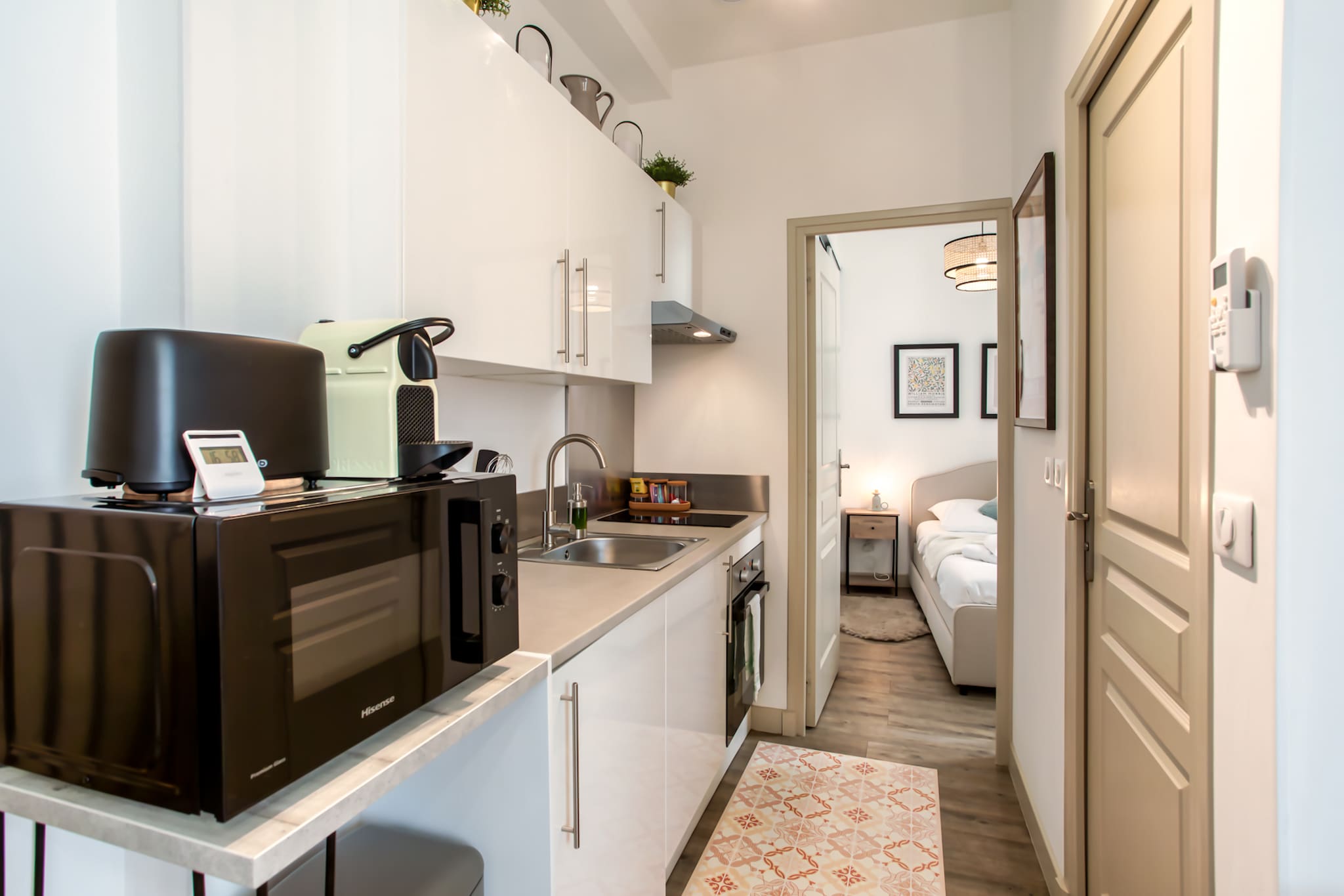在 Nice 的 公寓 有 1 卧室 有 可容纳 2 人. 住宿 有 25 m². 坐落于一个 有吸引力 的区域 或 靠近商业中心和餐馆. 配有 洗衣机, 熨斗, 吹风机, 中央暖气, 空调, 1 电视. 该 厨房, 配备有 冰箱, 微波炉, 烤箱, 冰柜, 碗碟/刀具, 餐具/厨房, 咖啡壶, 面包机 和 烧水壶.