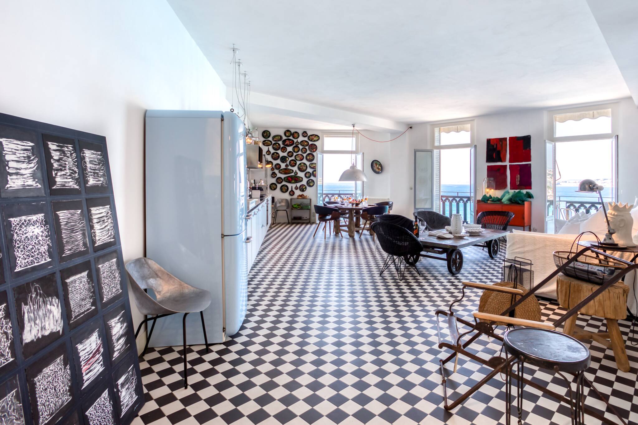 在 Nice 的 公寓 有 1 卧室 有 可容纳 2 人. 住宿 有 85 m², 附带风景 海景. 靠海的. 配有 电梯, 庭院家具, 洗衣机, 吹风机, 熨斗, 吹风机, 阳台, 中央暖气, 空调. 该 厨房, 配备有 冰箱, 微波炉, 烤箱, 冰柜, 洗碗机, 碗碟/刀具, 餐具/厨房, 咖啡壶, 面包机, 烧水壶 和 炉灶.